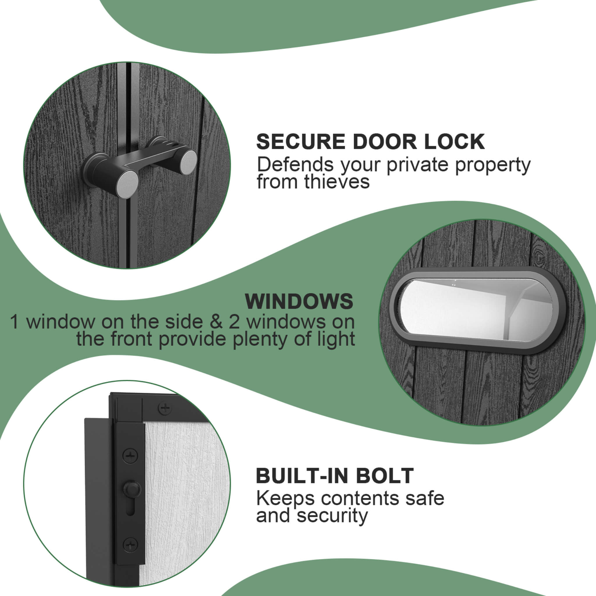 - For your peace of mind, secure lockable doors feature heavy-duty handles with padlock compatibility, offering reliable protection against theft (please note the lock is not included).