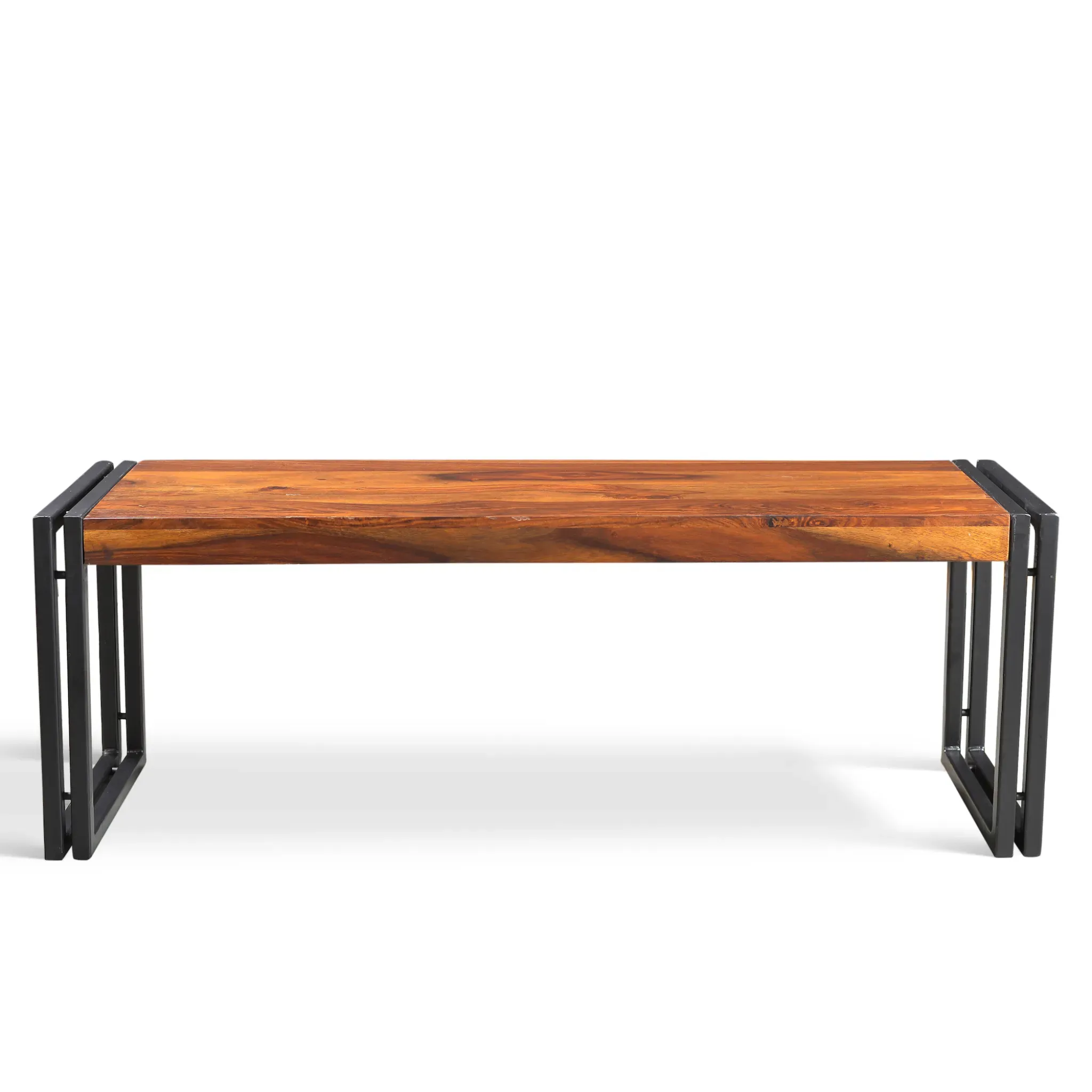 Introducing our exclusive Industrial range, utilizing industrial galvanized iron and handcrafted solid Sheesham wood materials for a modern furniture collection. This one-of-a-kind bench combines the elegance of solid Sheesham wood with the robustness of hand-forged iron, creating a unique and contemporary addition to your home. For a cohesive and sophisticated look, pair it with our solid Sheesham wood dining table. Handmade with impeccable craftsmanship using only the finest solid Sheesham wood.